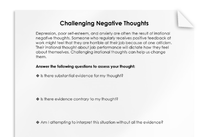 Use this core beliefs worksheet to help educate clients and get them to think about how their thoughts affect their mood and behavior. This CBT worksheet can also serve as a good take-home reminder after having a discussion about core beliefs.